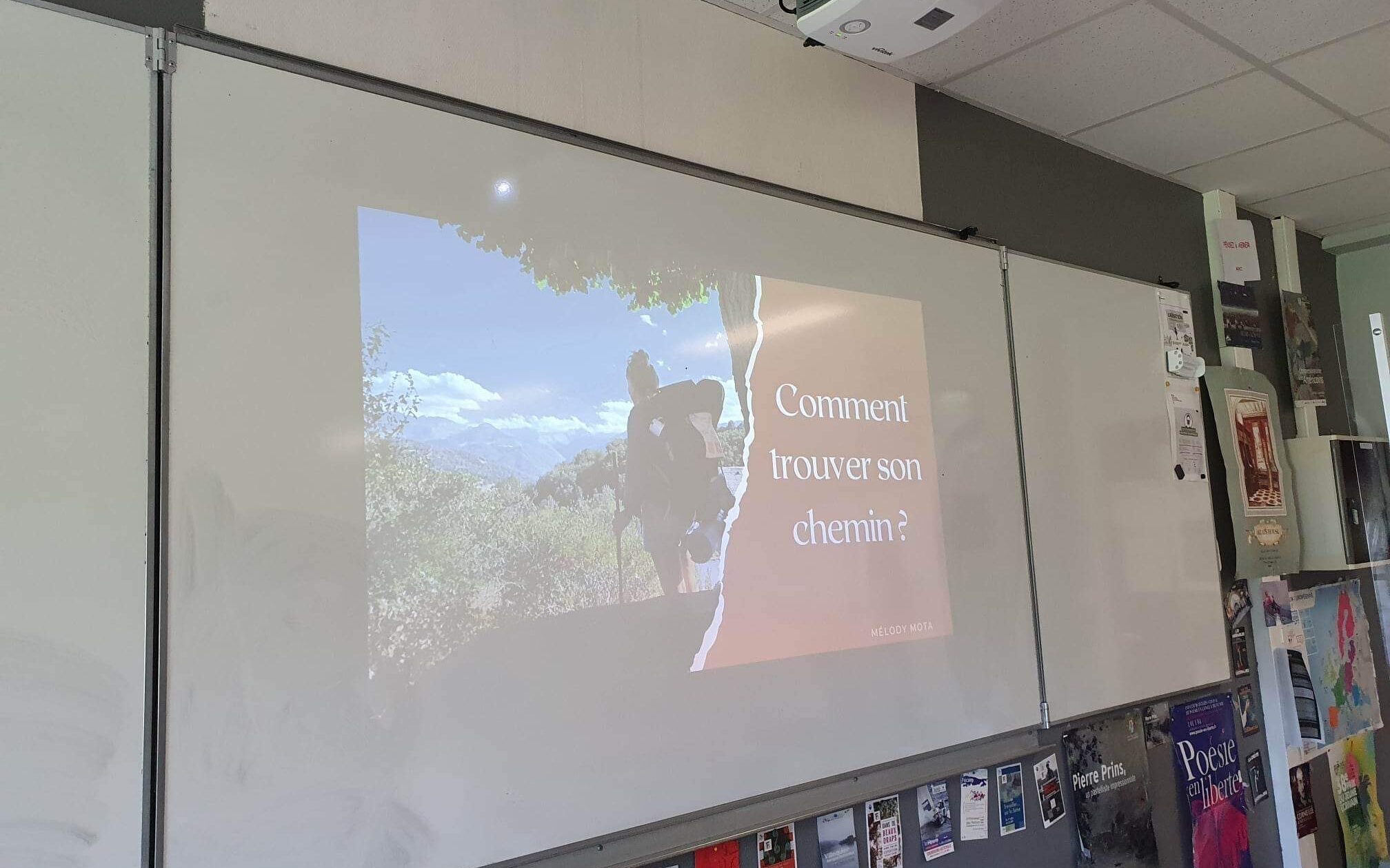 Je leur ai parlé du chemin. Comment trouver son chemin ? A mon agréable surprise, les élèves comprennent le double sens de cette question, et le parallèle entre la marche et trouver son chemin dans la vie, pour eux qui sont en plein dans ces premiers choix d’orientation. La marche comme allégorie de la vie : repérer les signes qui nous guident, écouter notre corps qui nous parle, accepter de se libérer du superflu, de faire de la place pour accueillir le renouveau, ou plutôt l’essence même de qui on est.